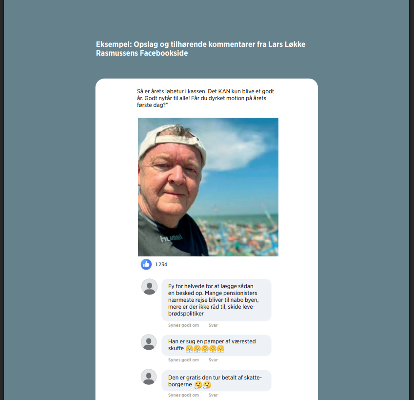 - Analyse af demokratisk afmagt og vrede på sociale medier: Vi har undersøgt, hvad danskerne skriver om demokratiet på sociale medier, heriblandt Facebook, X og TikTok. På baggrund af data fra 213.369 opslag, kommentarer og beskeder undersøger vi, hvordan danskernes demokratiske afmagt kommer til udtryk og hvem den rettes mod.